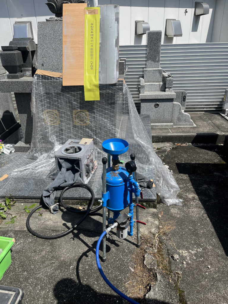 持ち帰りが難しい場所や特殊な構造の場合は、現地で直接文字彫刻を行います。